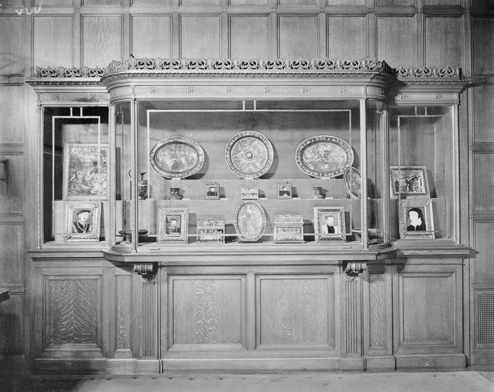 This space was designed as Mr. Frick’s study, complete with French doors that overlooked 71st Street and glass doors that opened on to the garden. The Enamels Room takes its name from the extraordinary collection of Limoges enamels, from the late 15th through the early 17th century, acquired by Frick in 1916 from the estate of J. P. Morgan. These enamels were later joined by fine Italian paintings, furniture, Renaissance bronzes, ceramics, timepieces, and other rare objects, creating the semblance of a precious treasury.