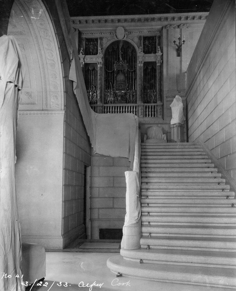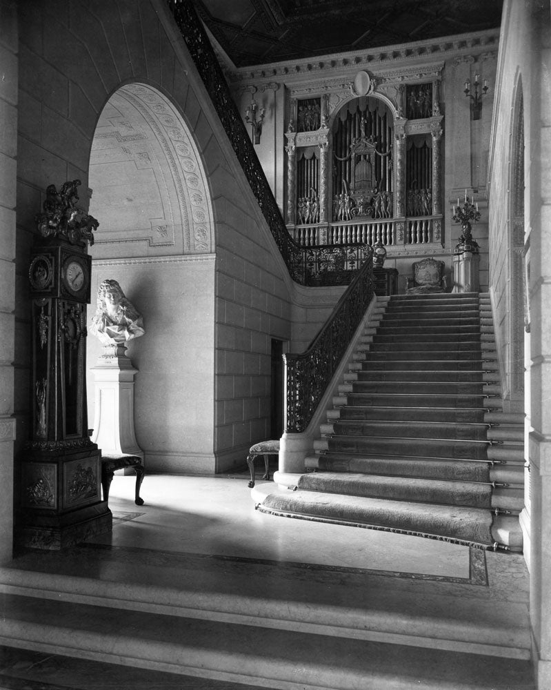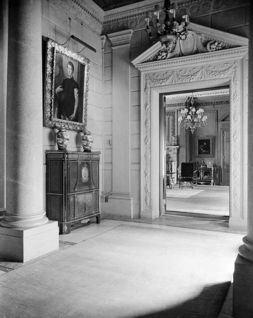 After entering the Frick home through the East Vestibule, visitors ascended through the foyer toward the South Hall, anchored by the Stair Hall at right. Here, a second axis led toward the Gallery, passing from the South Hall to the North Hall and uninterrupted by the central Living Hall. The halls were designed as a corridor for the public rooms—the Dining Room, Fragonard Room, Living Hall, and Library—each with views onto the Fifth Avenue Garden.