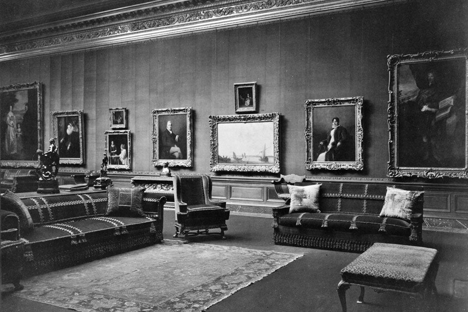 Mr. Frick’s collection had grown so large that it required a grand viewing space. In place of a ballroom, a Picture Gallery was created and occupied the most commanding location in the house. The gallery’s design recalls those of English country houses and the royal salons of the Renaissance and Baroque periods. In the remodeling of the original house in the 1930s, the appearance of the renamed West Gallery was altered by the addition of the large arched portals at either end.